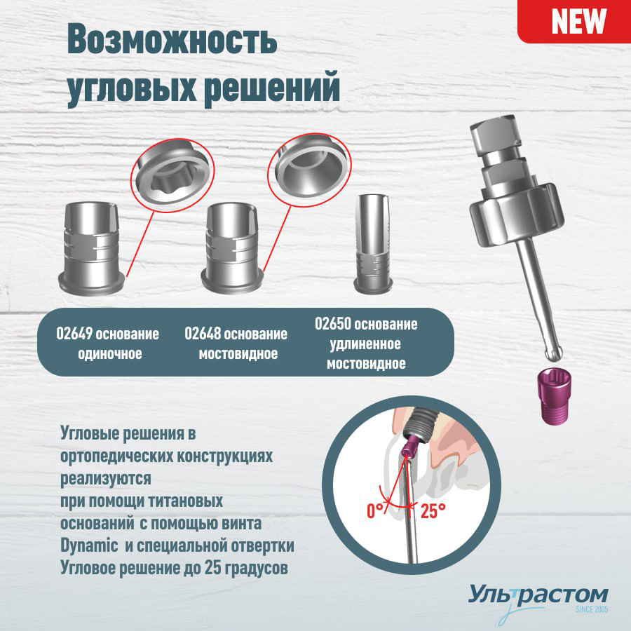 В 2004 году компания представила свой первый революционный продукт — Dynamic Abutment. Этот угловой абатмент значительно улучшил процедуры имплантации и эстетику в сложных клинических случаях, задав новый стандарт в отрасли.